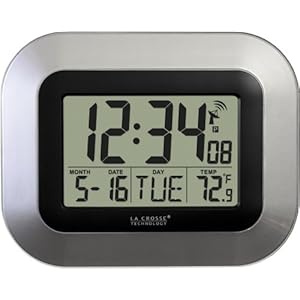 La Crosse Technology WT-8005U-S Atomic Digital Wall Clock with Indoor Temperature Silver