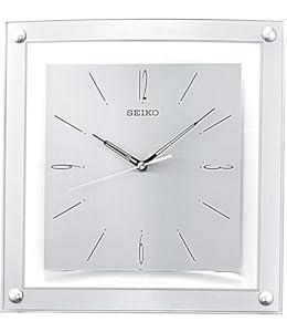 Sleek and simple, the Seiko Wall Clock is distinguished by its modern quiet-sweep design. Constructed with a square silver-tone metallic case and glass crystal, this clock includes slim black hour markers with Arabic numerals at the three, six, nine, and 12 o'clock. The timepiece also features virtually silent silver watch hands. The quiet-sweep second hand is designed to move continuously, eliminating annoying ticking sounds and allowing worry-free use in libraries, bedrooms, and other quiet spaces.
